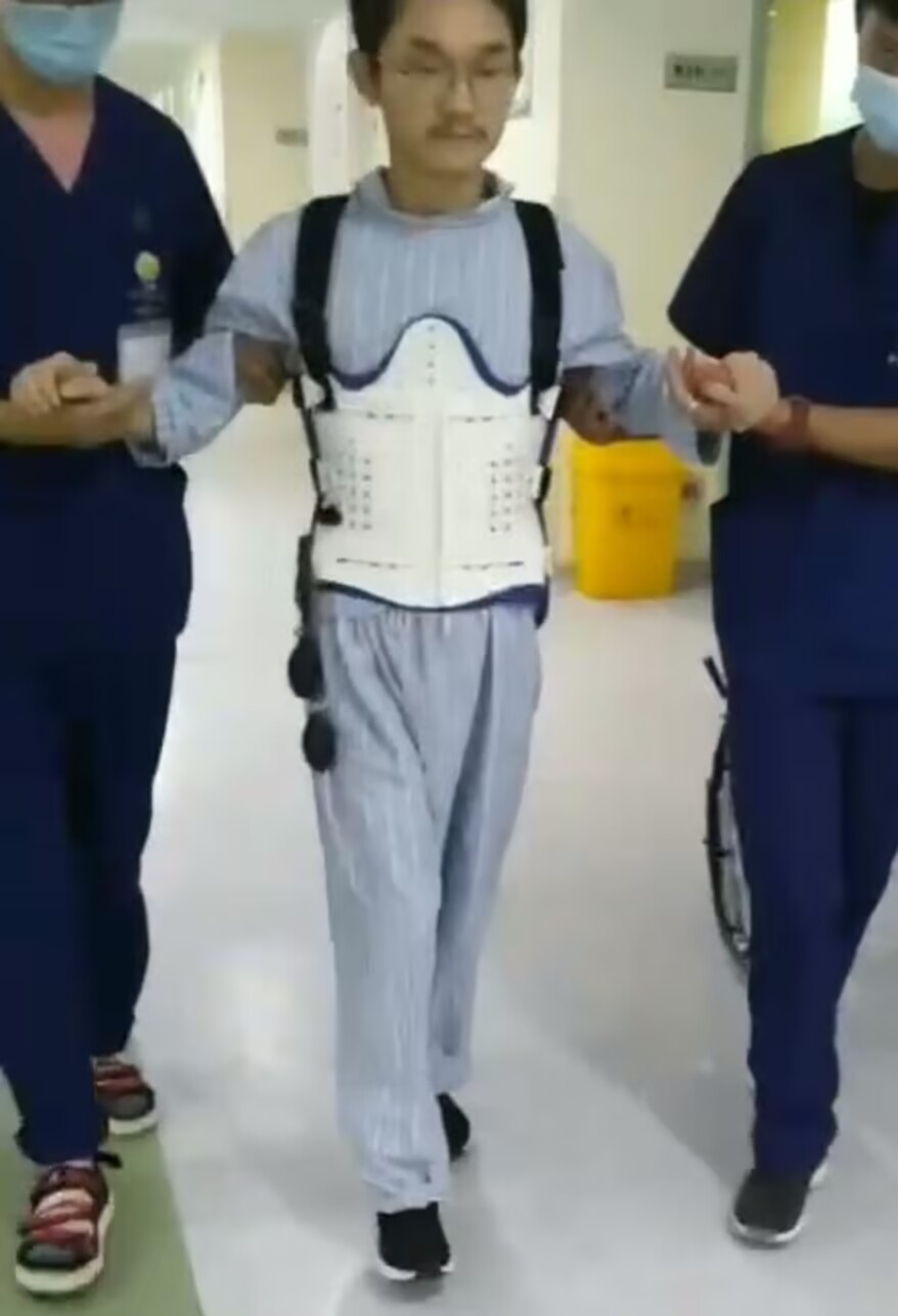 开学前,他申请办理了保留学籍,在休学的一年里,王坤像一两岁的孩童般重新开始学习走路。为了对抗腿部知觉的弱化,他穿着垫了指压板的鞋,在母亲的搀扶下一遍又一遍的上下攀爬楼梯。日复一日的训练,从毫无知觉到逐渐感受到来自脚掌的疼痛,他的知觉神经在一点点地恢复,那逐渐加深的疼痛成了他每天微小的幸福。