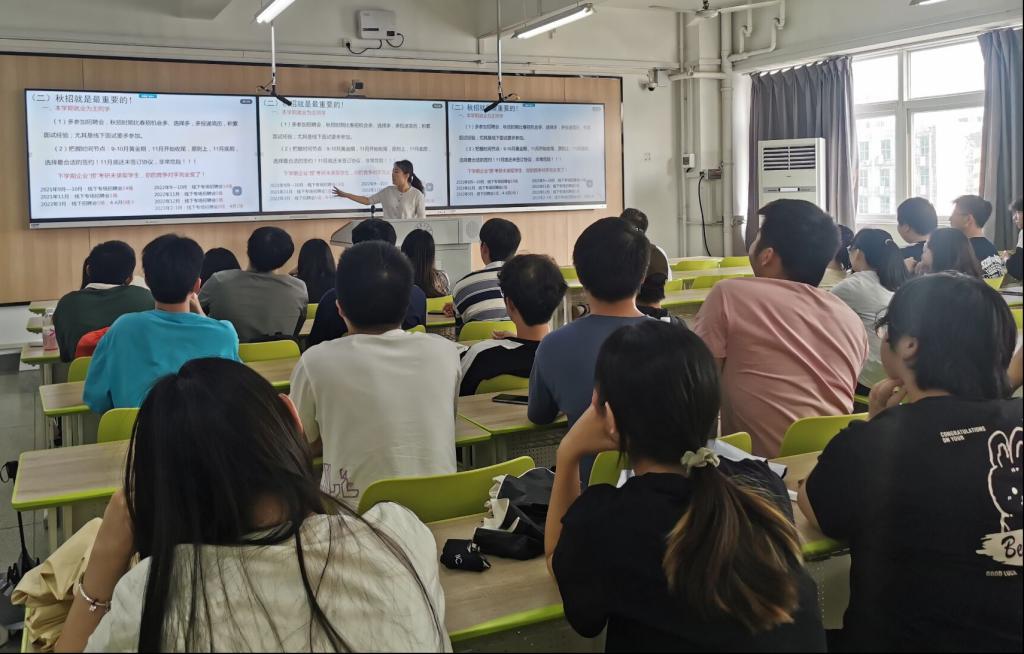 本次班从就业、考研、考公考编、出国留学、征兵入伍五个方面为同学们讲解了当前的就业环境和考研形势,通过分析研判近几年公司考研和就业数据,帮助员工清晰自身定位,明确发展方向,为就业做好准备。针对考研员工,两位老师建议大家科学择校、积极备考,同时把握住秋招的黄金时期,考研就业两手准备,提高上岸率。
