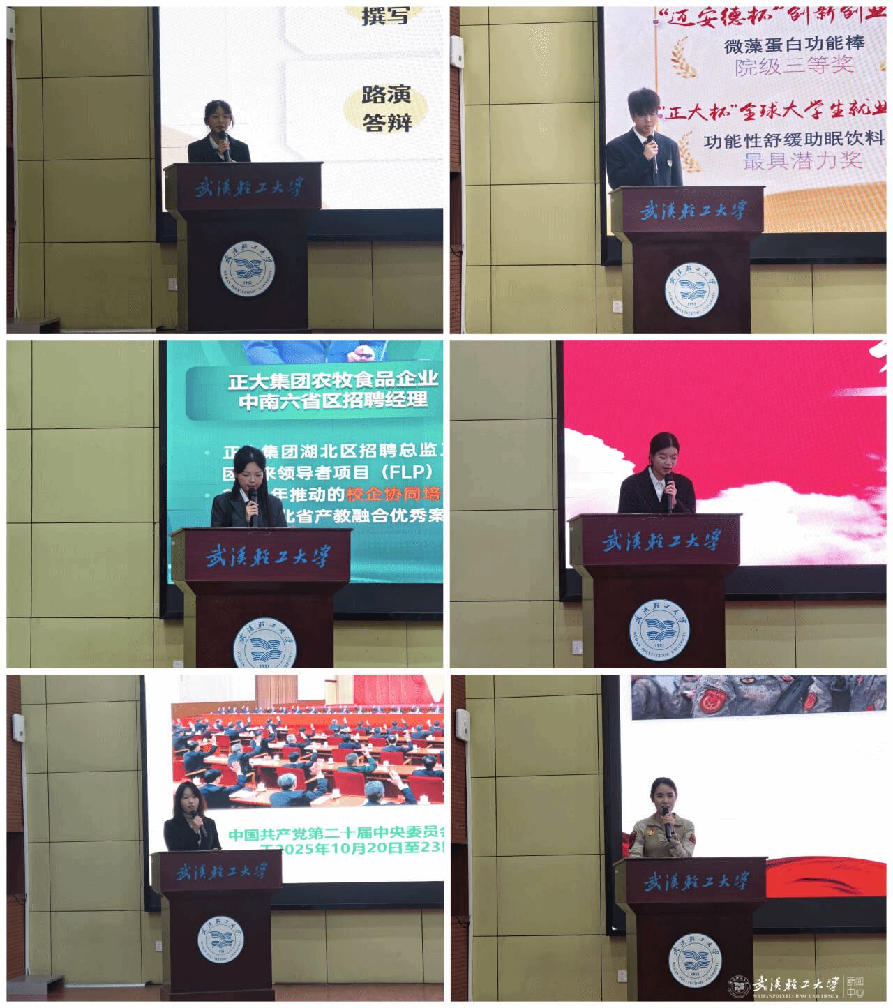 在随后的分享环节中,2022级湖北省“青马工程”学员王思博,国奖获得者朱湘雨、陈明汶、康子杰,以及食工2301班班长王钰璟先后围绕学业提升、科研入门、竞赛经验、班集体建设、考研准备等主题,进行了实用而精彩的交流分享。