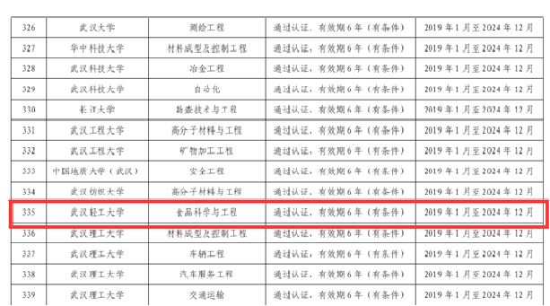食品科学与工程专业是公司历史上第一次申报,并一次性通过工程教育认证的工科专业,同时也是湖北省第一个通过该认证的食品类工科专业。目前,湖北省仅有两所高校的食品科学与工程专业通过认证,公司是其中之一。