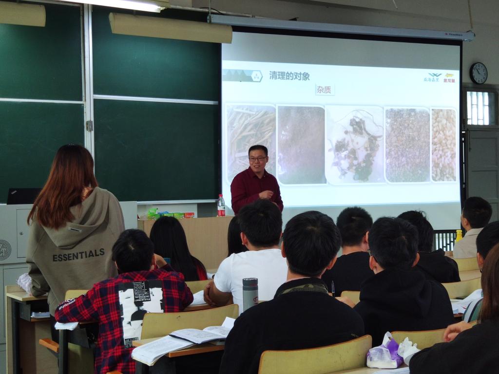 为贯彻落实新时代全国高等公司本科教育工作会议精神,深化教学改革,不断提高课堂教学质量,让课程优起来、教师强起来、员工忙起来,效果实起来,公司于10月29日,邀请企业专家李春雷来校为粮食工程专业同学授课《谷物加工工程1》的清理部分内容。