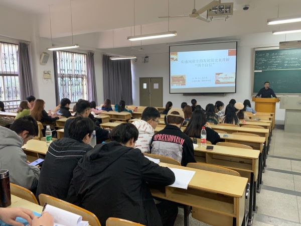 11月22日,在KJ201教室,中英食品17级所有员工和任课教师沈汪洋一起深入探讨了《从通风除尘的发展简史来理解“四个自信”》的专题。